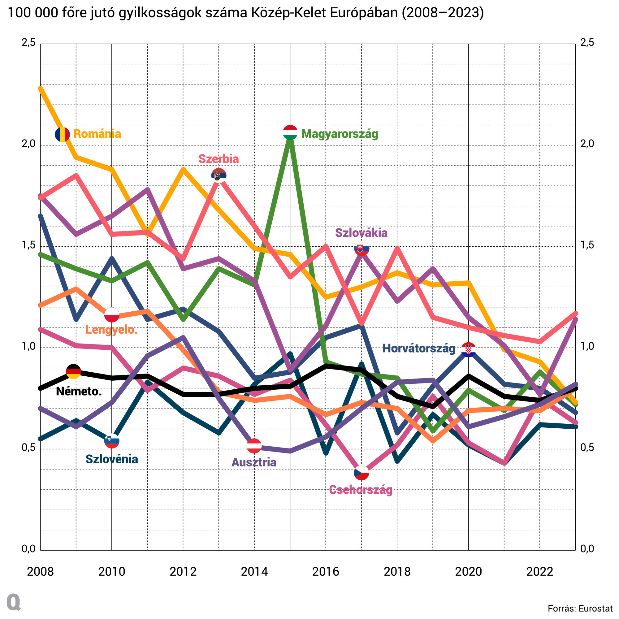 Természetesen ahhoz, hogy az egyes tagállamokat össze tudjuk hasonlítani egymással, nem az abszolút számokat kell vizsgálni, hiszen a 83 milliós Németországban biztosan több emberölés lesz, mint a 9,5 milliós Magyarországon, hanem azt, hogy hány emberülés jut 100 000 emberre.