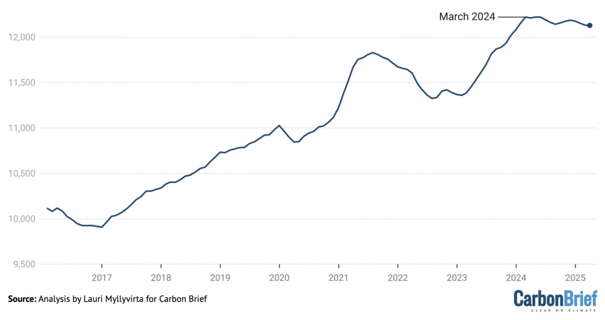 Különösen ígéretes, hogy a 2025 márciusát megelőző 12 hónapban az energiatermeléshez köthető kibocsátások 2 százalékkal csökkentek. Ha a trend nemcsak idén, hanem a következő években is folytatódik, akkor Kína már túl lehet az energiatermelő szektorból származó kibocsátásainak csúcsán.