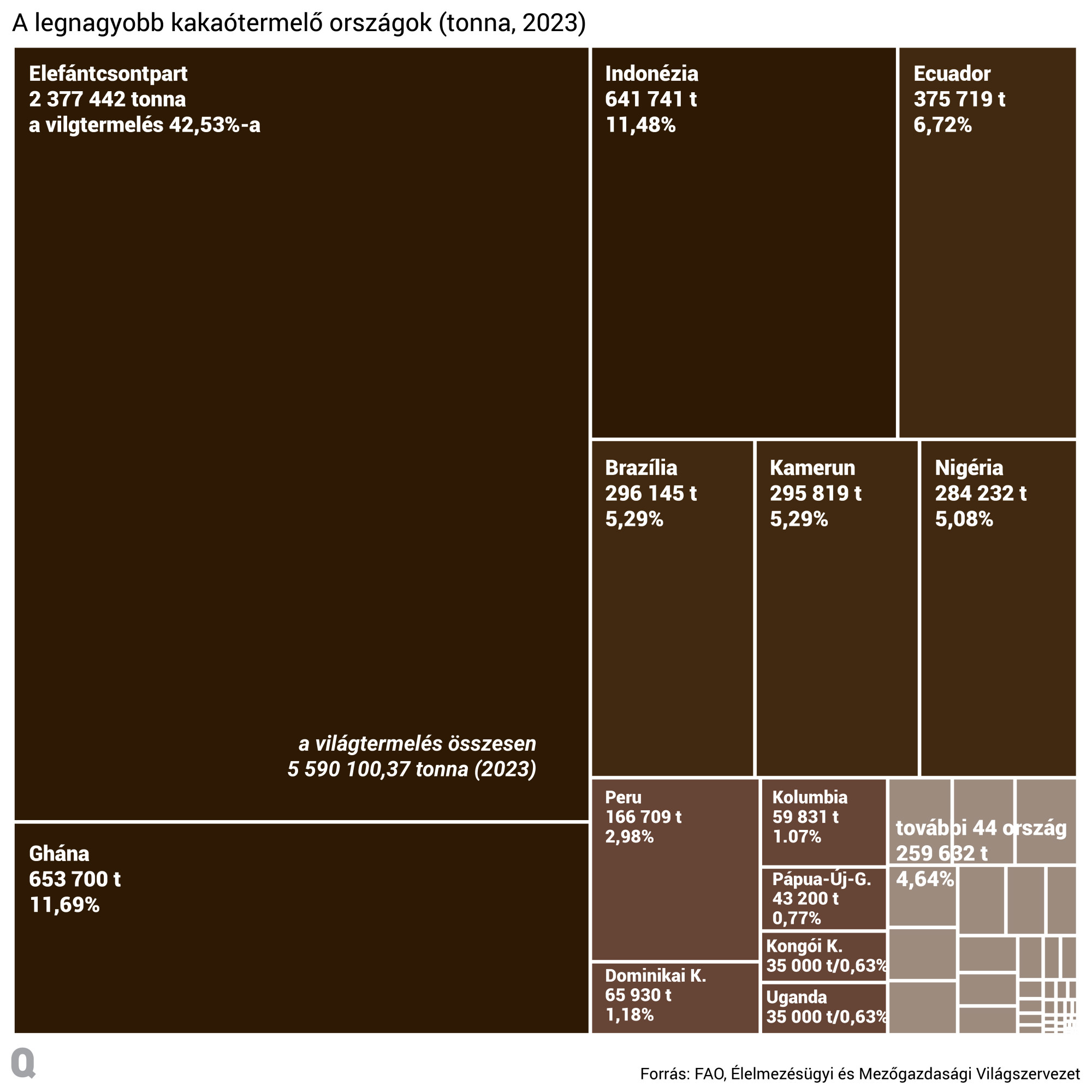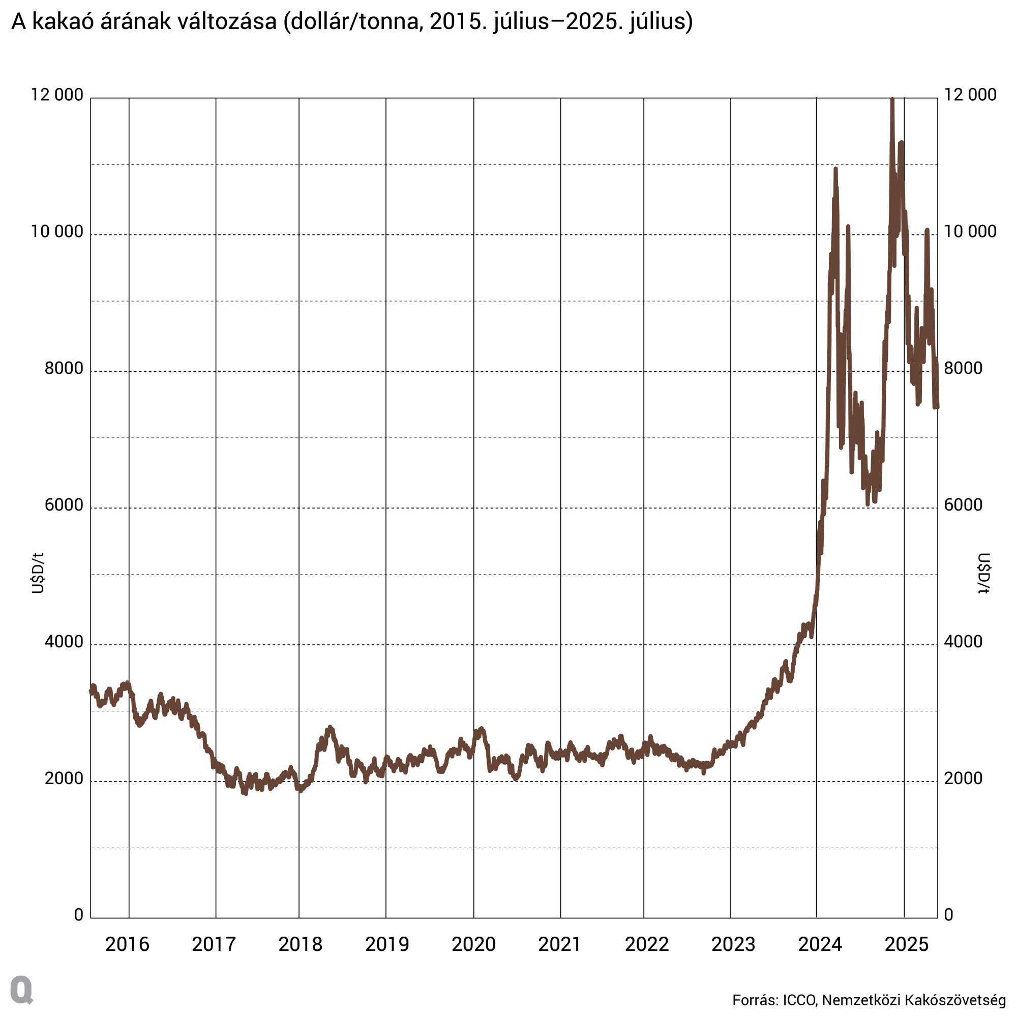 Ilyen zord körülmények között kellene a folyamatos igényeket kiszolgálnia Dél-Amerikának, Ázsiának és Afrikának, ami lehetetlen, és a terméshozam visszaesése meglátszik az árakon: a szűkülő alapanyagpiac 2024-ben drasztikusan felverte a kakaó eladási árát. Az ENSZ által közölt adatok alapján a tavalyi év elejére hirtelen 136 százalékkal nőtt a kakaó eladási ára, majd 2024 és 2025 között még tovább emelkedett.