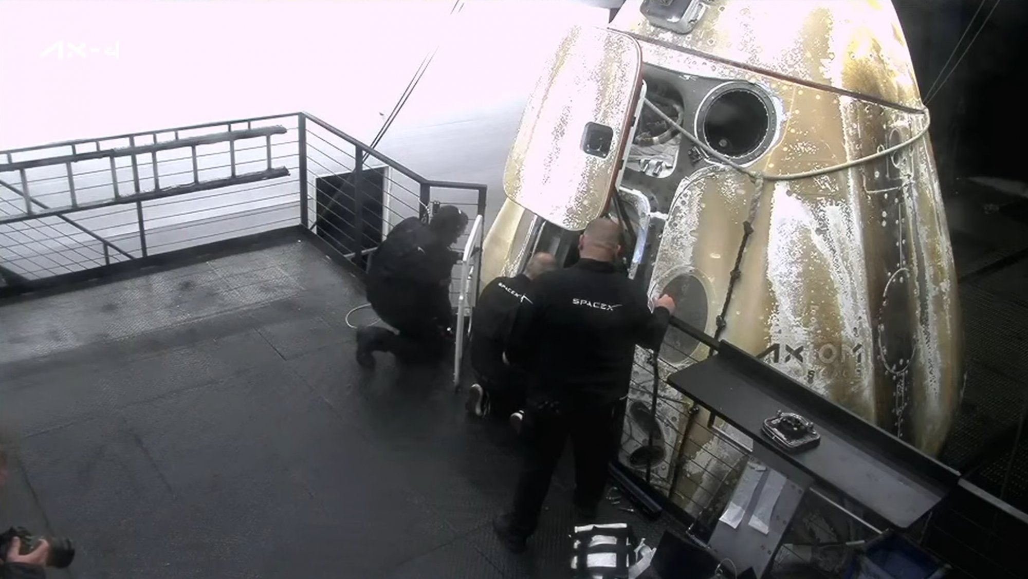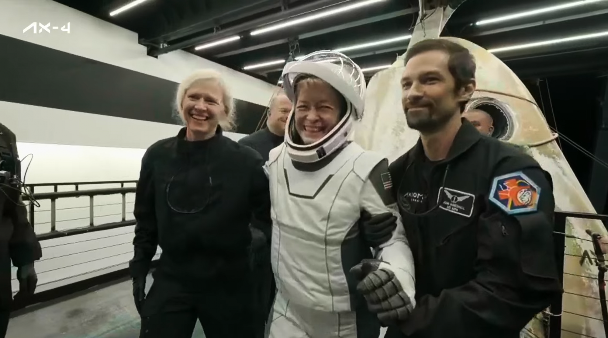 Majd még nyolc-kilenc percet, hogy kilépjen belőle az első űrhajós – elsőként a küldetés parancsnokát, Peggy Whitsont segítették ki a kapszulából:
