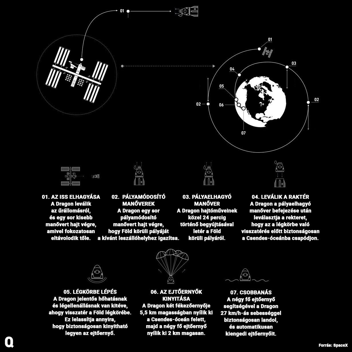 Ahogy korábban írtuk, most először fordult elő, hogy Elon Musk SpaceX-jének Dragon űrhajója a Nemzetközi Űrállomásról legénységgel nem az Egyesült Államok keleti, hanem nyugati partvidékére tért vissza. Ezzel a váltással űrvállalat és az amerikai űrügynökség (NASA) csökkenteni szeretné annak az esélyét, hogy az űrhajó raktere – amitől a visszatérés előtt meg kell szabadulnia – lakott területre zuhan.