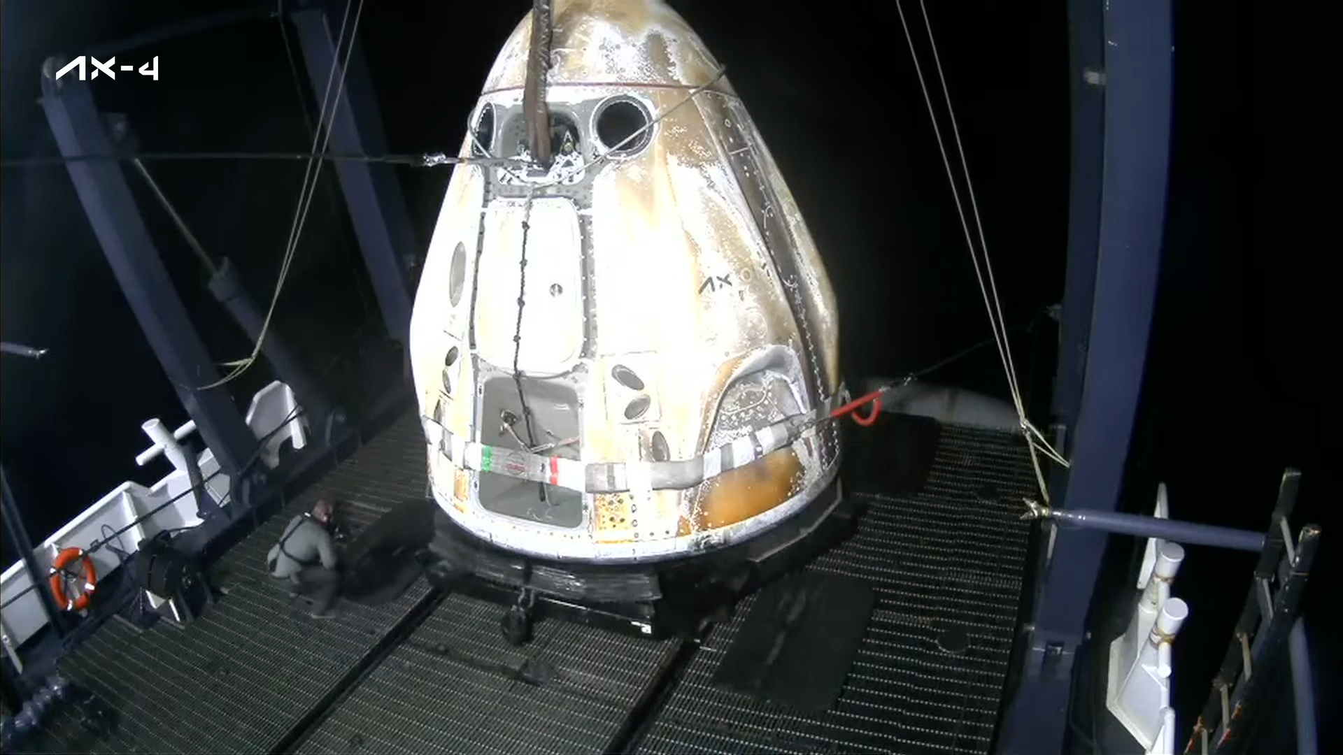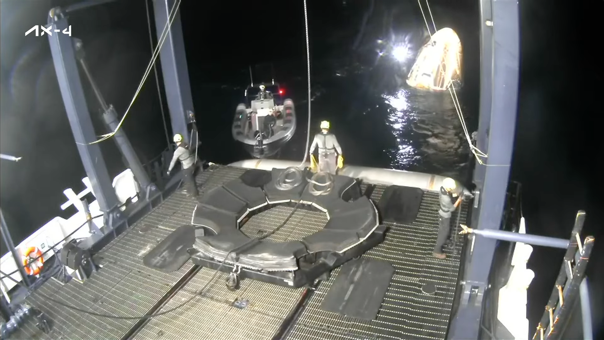 Nem sokkal dél után arra vártunk, hogy Kapu, valamint az Axiom–4 küldetés három másik űrhajósa, a lengyel Sławosz Uznański-Wiśniewski, az indiai Shubhanshu Shukla és az amerikai Peggy Whitson a fedélzetre lépjenek. Elsőként Whitson hagyta el az űrhajót, másodikként Shukla, harmadikként Uznański-Wiśniewski. Kapu utoljára szállt ki a Dragonból, ami után mosolygott és integetett a kamerának.