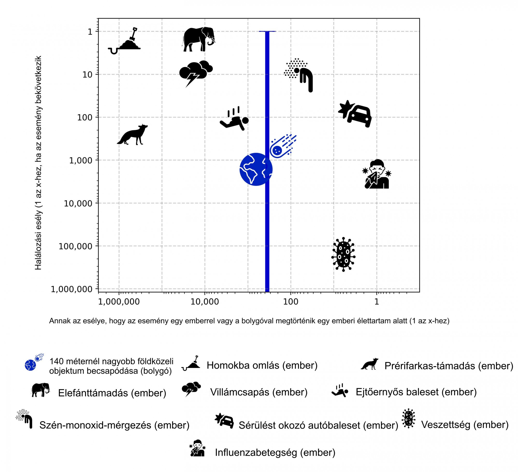 Egy friss kutatás, amit a földközeli objektumokat tanulmányozó és tudománynépszerűsítő munkáiról is ismert bolygókutató, Carrie Nugent vezetett, meglepő kontextusba helyezte egy halálos aszteroidabecsapódás kockázatát, miután azt ritka, de esetenként annál halálosabb balesetekkel, betegségek kockázatával hasonlította össze.