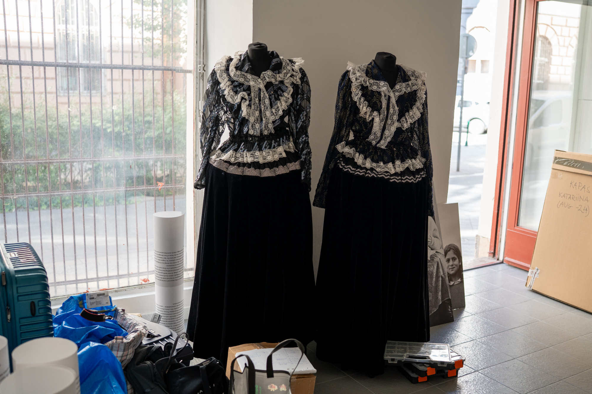A Bura Károly Galéria egy aprócska, az utcáról nyíló üzlethelyiség a 8. kerületi Kőfaragó utcában. Augusztus 19-én, 3 nappal a következő művészeti kiállítás megnyitója előtt nagy a mozgás itt, a válogatott képek a fal mellett állva várnak arra, hogy rögzítsék őket a kiállítótérben, és nagy szatyrokban itt vannak már a ruhadarabok és a csipkék is, amik tovább gazdagítják majd a tárlatot. A helyiségben finnül beszélgetnek egymással a Finnagora kulturális szervezet munkatársai, illetve a Súlyos Csipke (Heavy Lace) kiállítás kurátora, Katariina Lillqvist.
