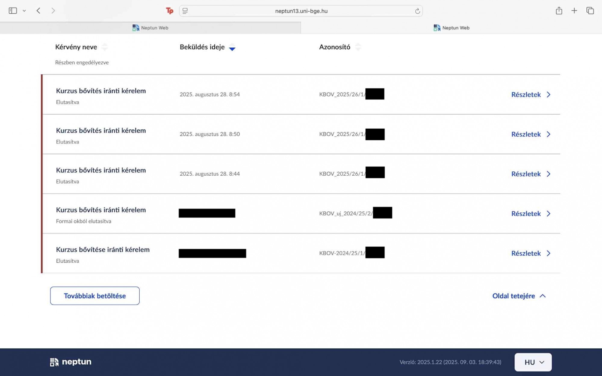 Nem csoda, hogy százával érkeznek az e-mailek és a kérvények a tanszékekre, elsősorban a férőhelybővítések miatt. Azt ugyanakkor a hallgatók is érzik, hogy képtelenség ennyi levelet megválaszolni: volt, aki már augusztus második felében, illetve szeptember legelején igyekezett elejét venni a tárgyfelvételi nehézségeknek, mindhiába. A hallgatóknak eddig kiküldött tájékoztató levelekben az szerepel, hogy minden kötelező tárgyra lesz elég férőhely, de hiába kezdődött meg a félév, sokan várnak arra, hogy felvehessék egyes tárgyaikat. A Qubitnek nyilatkozó hallgatók egyike azt is megmutatta, hogy az összes általa beadott férőhelybővítési kérelmet elutasították.