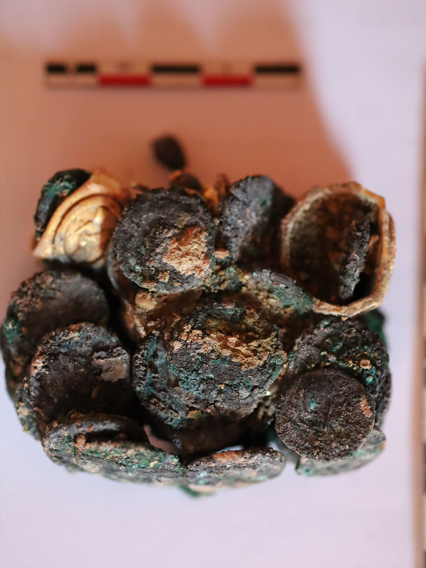 A több mint negyven pénzérmét és a finom, fém díszítéseket Istria község közelében találták meg, a Fekete-tenger nyugati partvidékén. Errefelé görög közösség élt valaha, és a település valamikor az első században került a Római Birodalom fennhatósága alá.