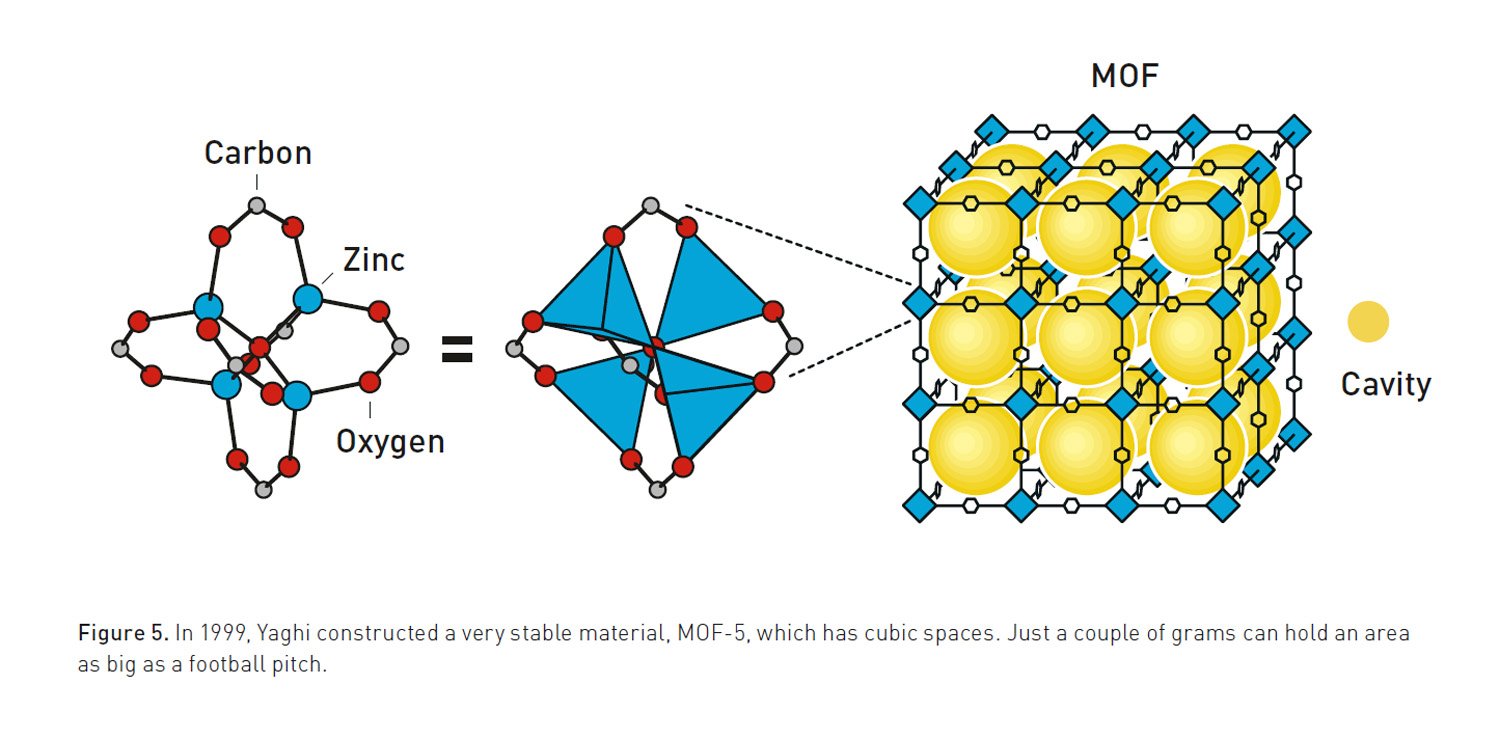 Kitagava, a Kiotói Egyetem professzora és Yaghi, a Kaliforniai Egyetem (Berkeley) professzora ezt a problémát oldották meg. A két kutató 1992 és 2003 között egymástól függetlenül áttörő felfedezéseket tett, amik megalapozták fémorganikus vázszerkezetű anyagok gyakorlati alkalmazását.