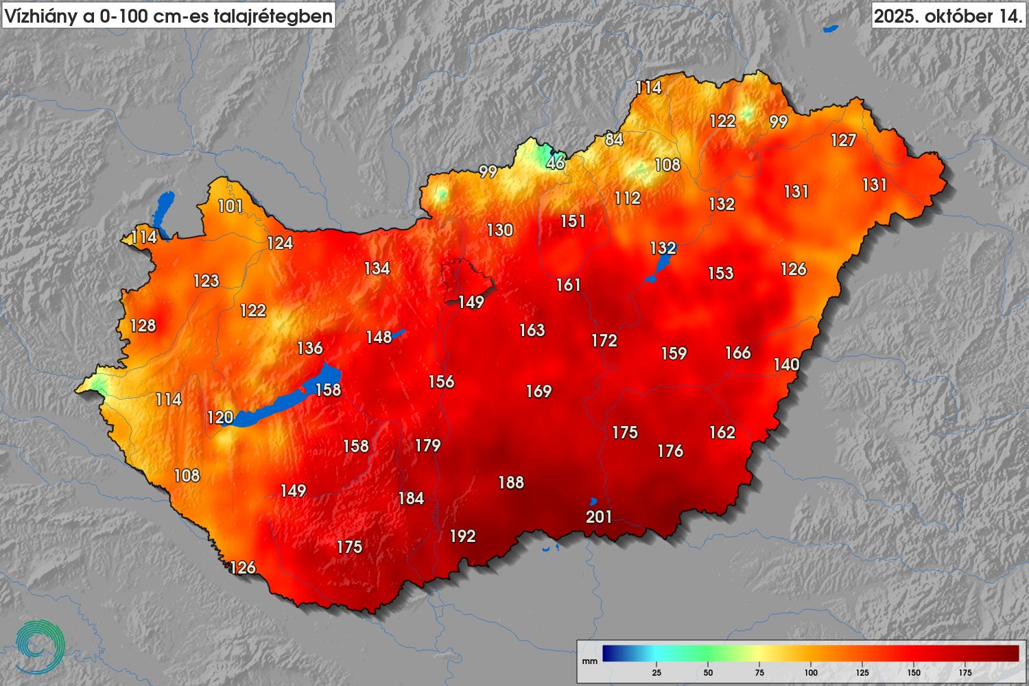 A vízhiány„ a talaj felső egy méteres rétegében a Dél-Alföldön már 200 (!!) mm körüli, de az ország más részein is – kisebb körzeteket leszámítva – meghaladja a 100 mm-t!” – áll a bejegyzésben.
