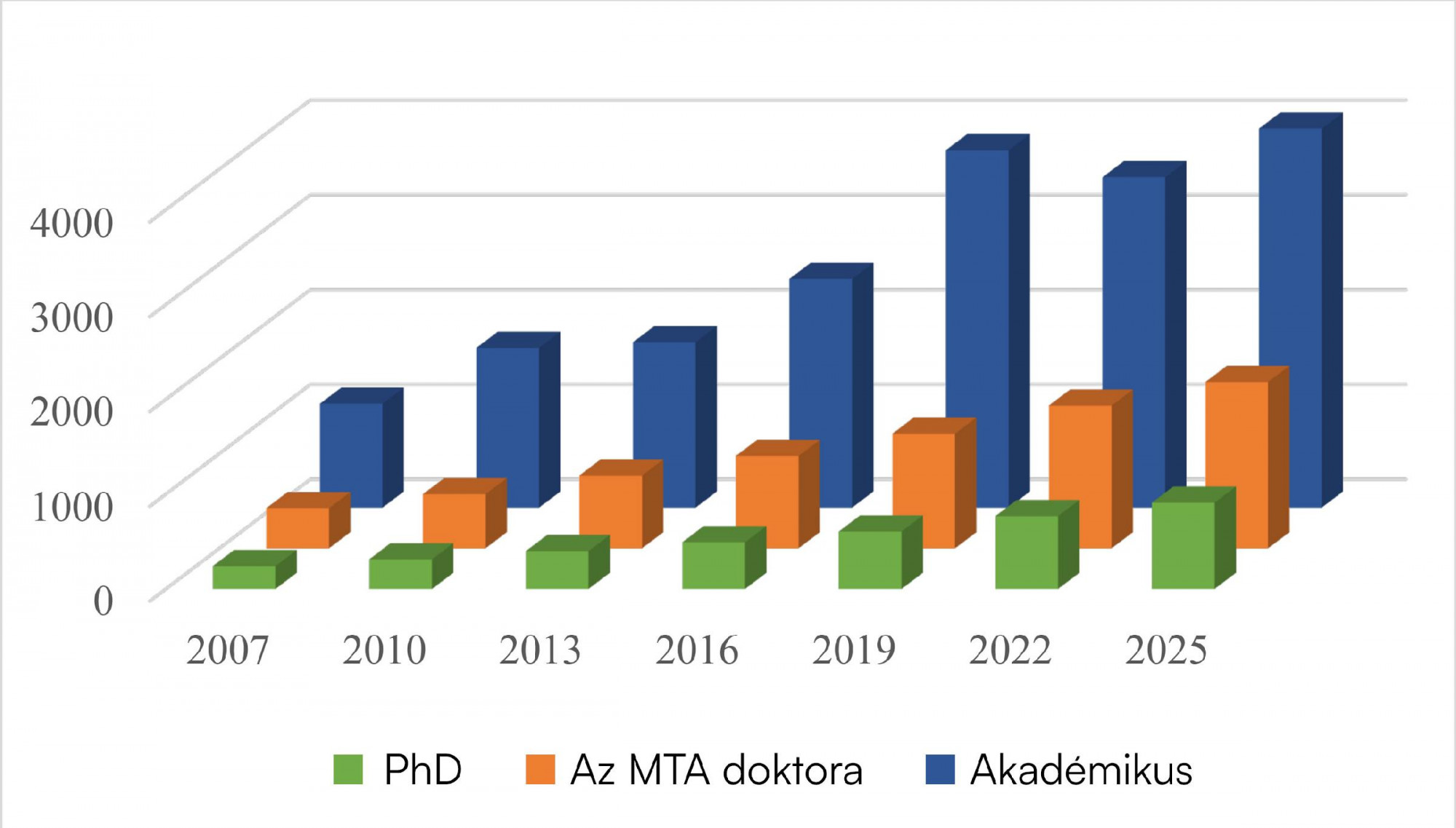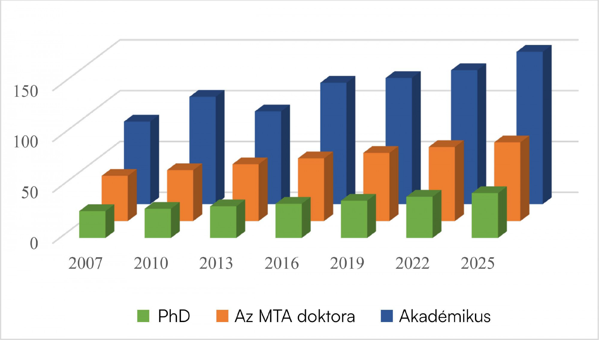 Ezzel szemben az MTA összehasonlító elemzése szerint a PhD-s kutatók, az MTA doktorai és az akadémikusok között is folyamatosan növekszik a publikációk és a hivatkozások száma a 2007–2025 közötti időszakban, de az akadémikusok átlagos teljesítménye közülük is kiemelkedik.