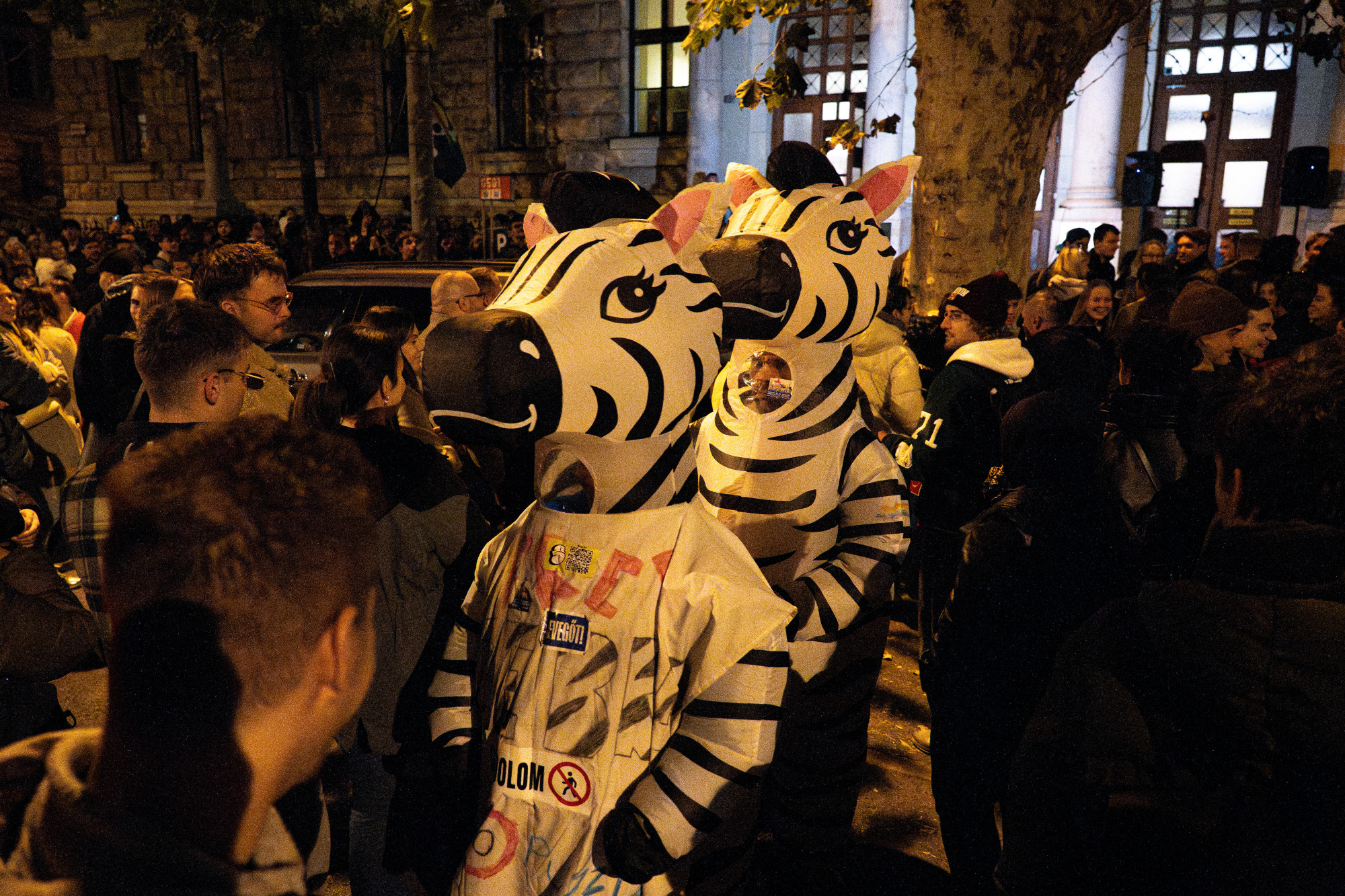 Dégiék már a kezdetektől békés, politikamentes tüntetést szerveztek, ezt minden felületen hangsúlyozták. Ehhez olyannyira tartották magukat, hogy a demonstráción megjelenő, ember nagyságú zebrákat kitessékelték a rendezvényről, amikor pedig a tömeg elkezdte fújozni a rektort és az intézkedéseit, leintették az embereket. Több alkalommal meg is köszönték a vezetésnek, hogy megtarthatták az eseményt.