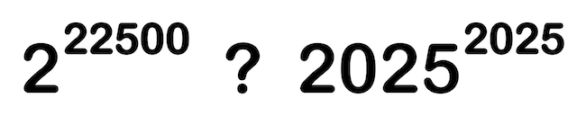 Melyik hatvány a nagyobb? 2025 a 2025. hatványon, vagy 2 a 22500. hatványon? A megoldáshoz ne használj számológépet, se logaritmust!
