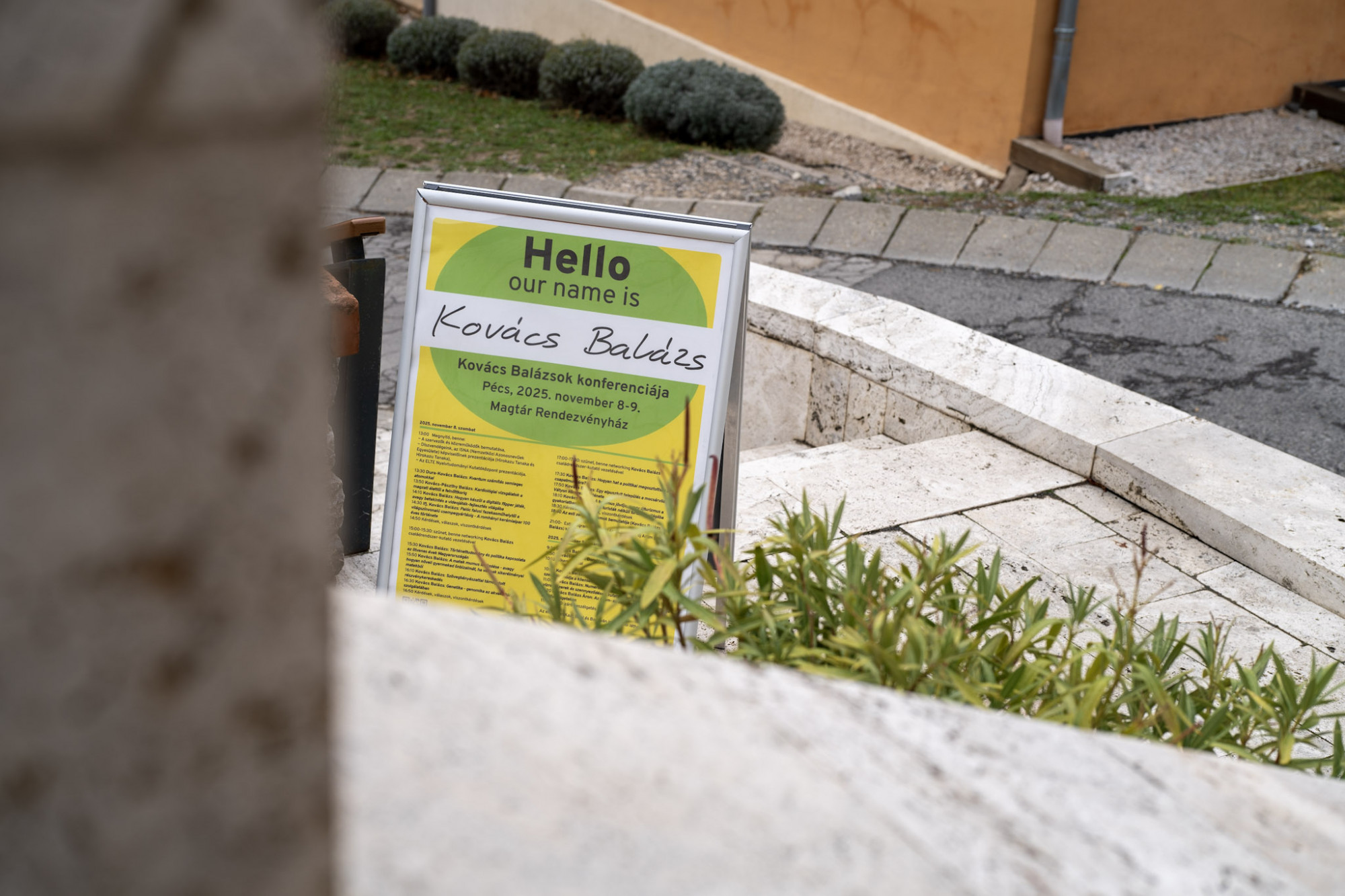 Ami igaz is lehetett, november 8-án szombaton ugyanis összesen 13 Kovács Balázs tartott előadást (vagy zenei műsort) a pécsi Magtár Rendezvényházban, a székesegyház mellett, vasárnapra pedig még így is maradt négy, összesen pedig 14, ha hozzávesszük azokat is, akik a konferencia második napján is részt vettek nézőként, kerekasztalosként, félkerekasztalosként vagy csak szimplán Kovács Balázsként. A résztvevőket azért nehéz összeszámolni, mert itt egy (két) napra mindenki Kovács Balázs lehetett: a regisztrált vendégek névtáblát is kaptak, és ha elfogadjuk az ideiglenes névváltást, összesen nagyjából ötvenen lehettünk mi, akkorra már úgyistudodkik.