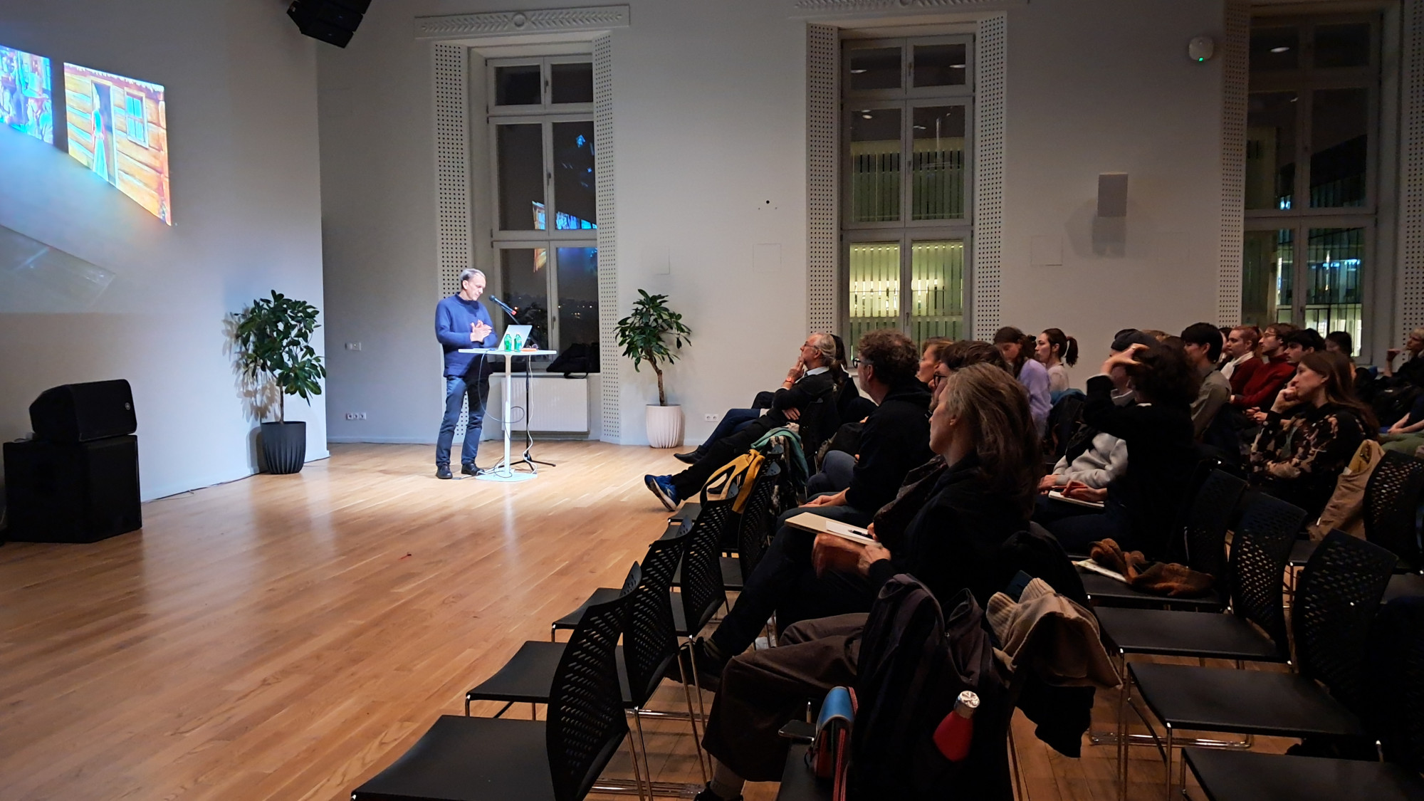 Rosefeldt az előadásban szóba került összes munka mellé bemutatta a készítés körülményeit, a látvány előállításának módszerét is. Hol és hogyan állt a kamera, milyen volt a világítás, a képernyők milyen módon állnak vizuális párbeszédben egymással. Hiszen ma, a szűnni nem akaró képcunami, az AI használatával manipulált képek korában alapkérdés, hogy amit látunk, az ténylegesen micsoda, kik, milyen célból és hogyan készítették. Hihetünk-e a szemünknek?