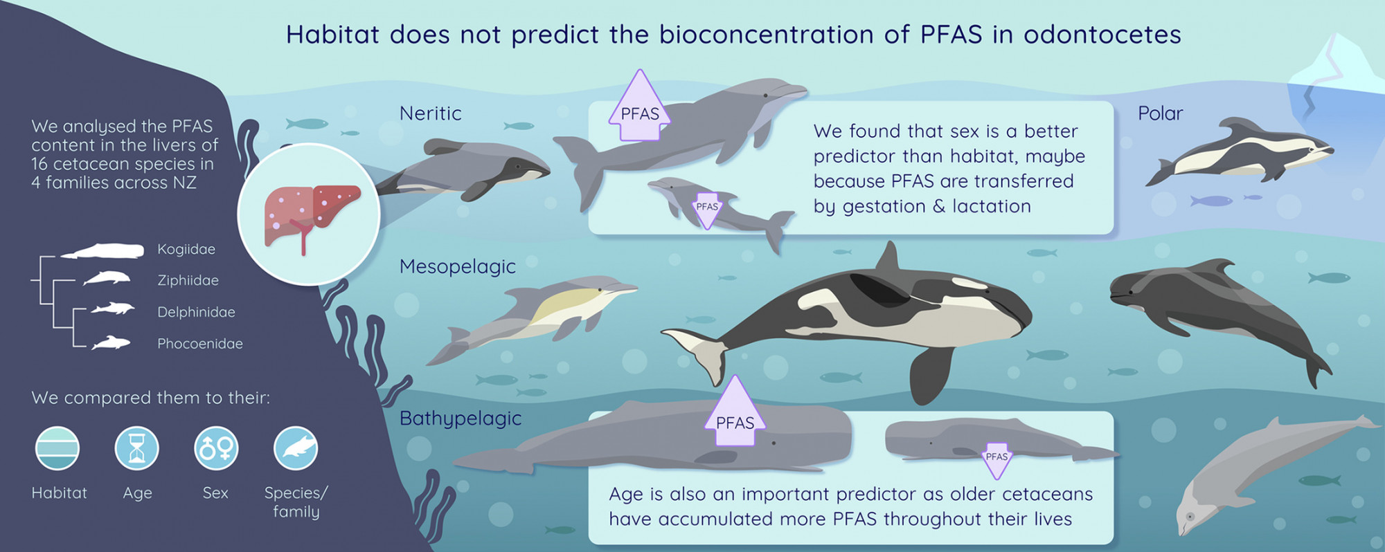 „Azt vártuk, hogy a főként mély vízben táplálkozó fajok, mint az ámbráscetek, alacsonyabb PFAS-szennyezettséget mutatnak, mint az olyan part menti fajok, mint a Hector-delfinek, amelyek közelebb vannak a szennyezés forrásaihoz, de az eredmények azt mutatják, hogy nem ez a helyzet. Úgy tűnik, valóban nincs hová bújni az örök vegyi anyagok elől” -- fogalmazott a kutató.