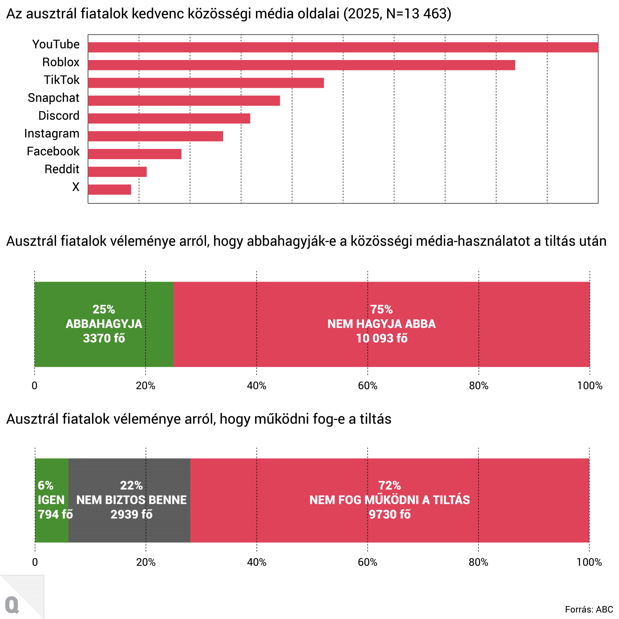Az ehhez hasonló szélsőséges reakciók azonban nem következnek törvényszerűen az ausztrál tiltásból, de az eddigi, fiatalkorúakra és kamaszokra vonatkozó törvények kontextusában legalábbis furcsán mutat a közösségi média szigorú korlátozása. Az ausztrál tinédzserek 16 és fél évesen jelentkezhetnek a hadseregbe, és 17 éves korukban csatlakozhatnak is, 16 éves koruktól regisztrálhatnak a választásokra, ugyanakkor csak 18 éves korukban szavazhatnak. Ráadásul az ausztrál kamaszok 14 éves koruktól kezdve teljes felelősséggel tartoznak a törvényszegéseikért, míg a 10-13 éves gyerekek esetében be kell bizonyítani, hogy tudatában voltak a tetteiknek. Az továbbra is kérdéses, hogy mennyire lesz hatékony a közösségi média radikális tiltása, és milyen ellenőrizhetetlen felületekre terelődnek át a fiatalok.