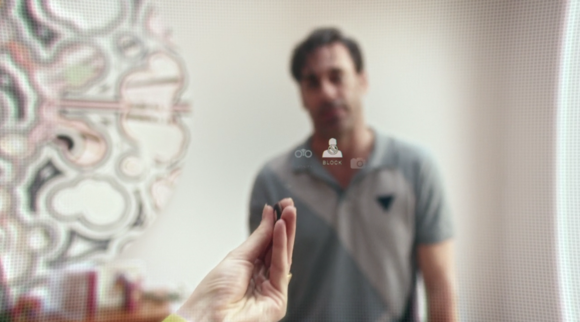 A Z-Eye legfélelmetesebb funkciója azonban nem a puszta információközlés, hanem a szelektív érzékelés, vagyis a „blokkolás”. Ez közvetlenül a 2014-ben már nagyra nőtt, de még mindig formálódó közösségi médiából jön: a durvuló online közbeszéd, az internetes zaklatások és más társjelenségek hatására egyre népszerűbbé vált az ismerősök vagy ismeretlen profilok tiltása Facebookon, Twitteren, stb. Az epizódban ennek a húsbavágó kiterjesztését látjuk: ha valakit a Z-Eye-jal blokkolunk, az illető helyén csak szürke, kásás sziluettet látunk, a hangja pedig érthetetlen zörejjé válik. Ez 2014-ben még szürreálisnak hatott, ám a mai algoritmusoknak ez a feladat már korántsem lehetetlen. A modern kiterjesztett valóságban ezt diminished reality-nek (DR, csökkentett valóság) nevezik. A mai képfeldolgozó algoritmusok és az „AI-radírozás” típusú funkciók segítségével már egy kattintással el lehet tüntetni tárgyakat vagy akár embereket egy fotóról vagy videóról – ennek olyan háttértechnológiák ágyaztak meg, mint a Meta-féle Segment Anything Model, ami képes megkülönböztetni az egy képen vagy videón szereplő objektumokat és személyeket, és lehetővé teszi, hogy külön-külön kezeljük, módosítsuk őket. De létezik már valós idejű reklámblokkoló is: egy belga szoftvermérnök a Snap Spectacles AR-szemüvegre írt olyan appot, ami a köztéri és újsághirdetéseket is kitakarja.