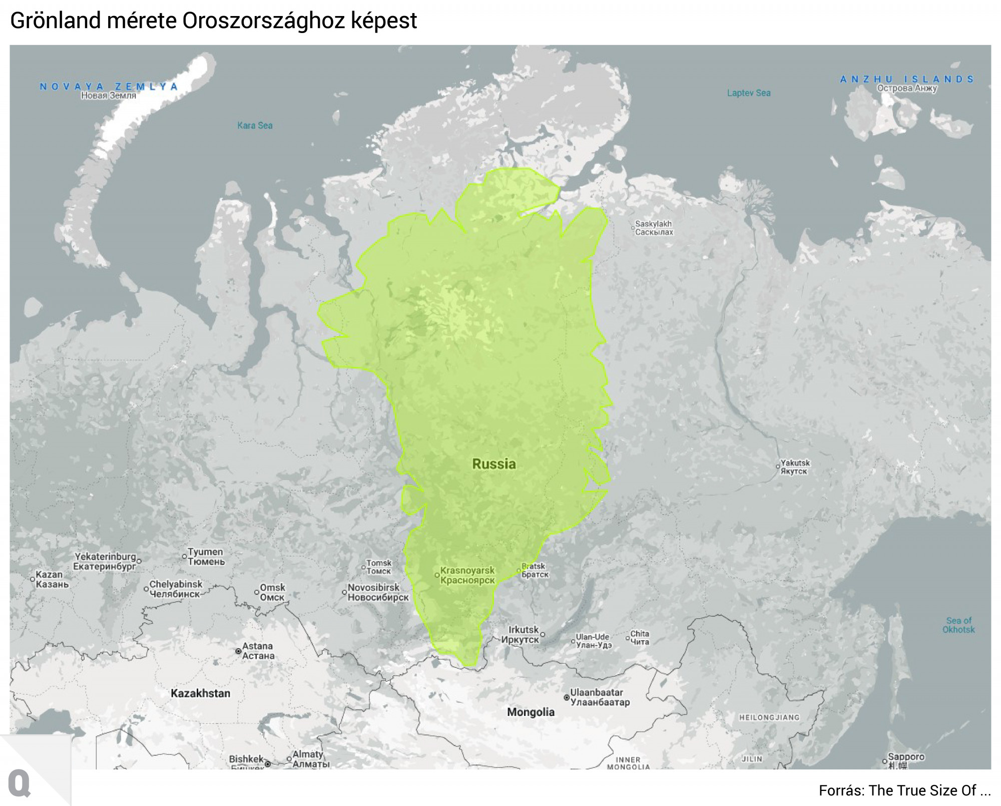 A maga 17 millió négyzetkilométerével a Föld legnagyobb területű országa Oroszország, amely ráadásul a világ legnagyobb nukleáris arzenáljával rendelkezik, tehát a fokozódó nemzetközi helyzetben nem véletlenül annektálná Trump a stratégiai helyen fekvő Grönlandot. A sziget azonban szinte elveszne Szibériában. Vagy ha más jeges vidékeket nézünk: Grönland épphogy egy kicsivel nagyobb Alaszkánál, amit a krími háború után 1876-ban az oroszok alig 2 cent/hektár áron adtak el az Egyesült Államoknak.
