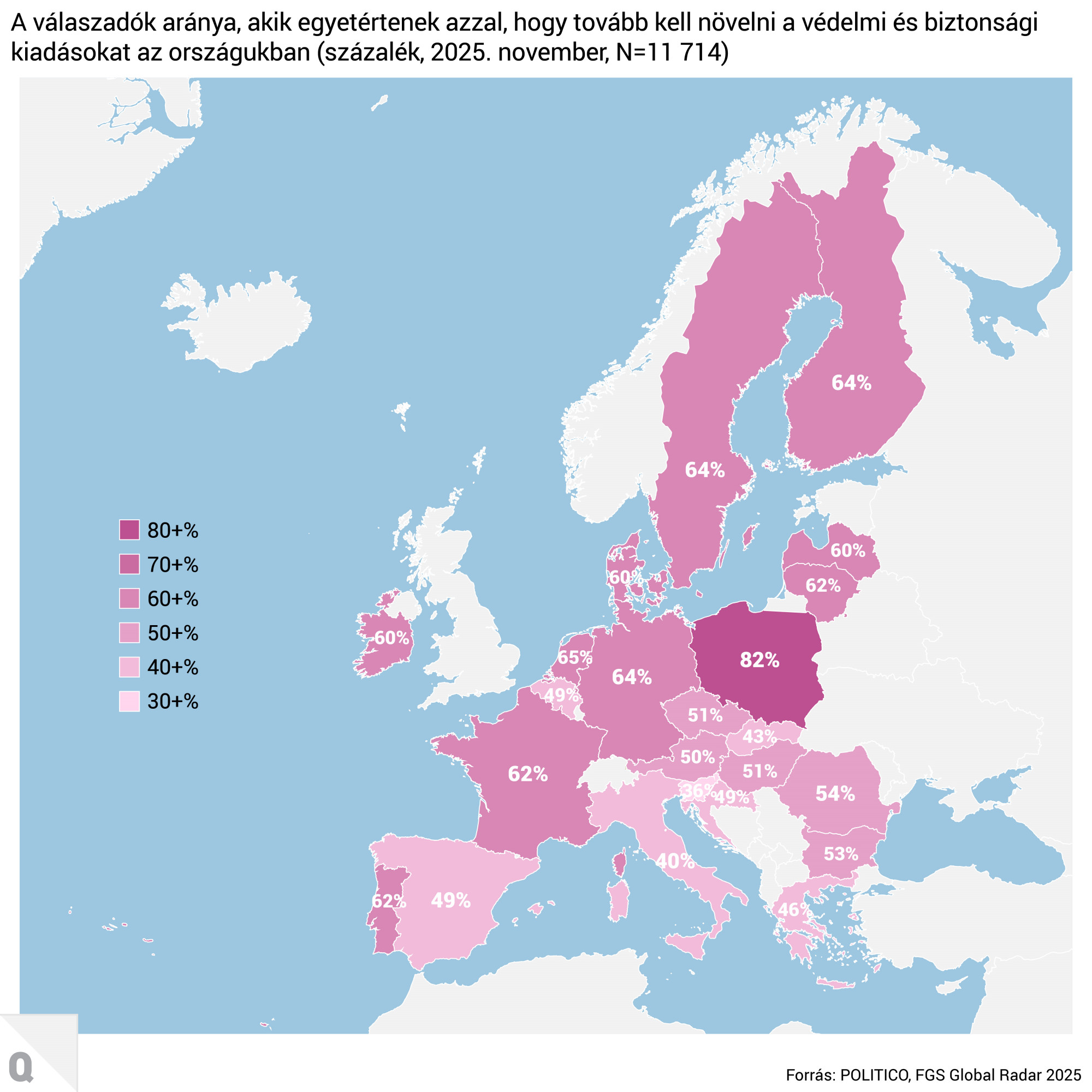 A megkérdezettek 57 százaléka támogatta a „védelmi és biztonsági kiadások növelését”, amely tendencia egybecseng az Európai Unió által is támogatott védekezési stratégiák és lakossági felkészültség átfogó kidolgozásával. Ehhez az európai trendhez nagy részben hozzájárultak Donald Trump nemzetközi politikájának fenyegetései is, mint például a Grönland megszerzésére irányuló amerikai törekvések. Ráadásul a megkérdezett lakosság szerint az unióba érkező migrációs hullámok is aggodalomra adtak okot. A válaszadók 71 százaléka úgy gondolta, hogy „az Európai Uniónak sokkal magasabb fokú ellenőrzést kellene biztosítania a tagállamoknak saját határaik felett, hogy az országok jobban tudják kezelni a bevándorlást”.