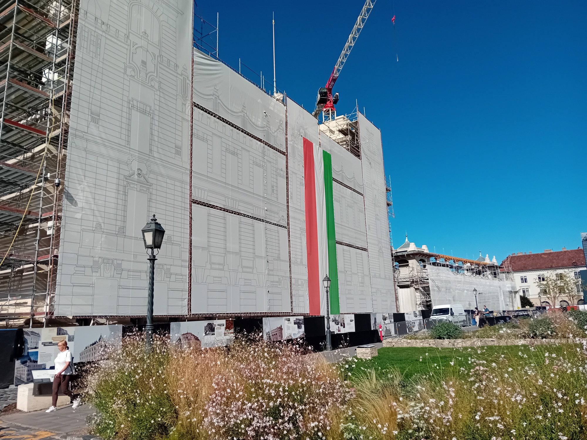 Az orbáni zászlópolitika jellemzői közé tartozik a monumentalitás. A mércét Makovecz Imrének a Tímár utcai HÉV-megállónál 2006-ban felállított 45 méter magas zászlórúdja jelenti. A jelentések átírására jellemző, hogy a tetején eredetileg az 1956-os lyukas zászló lobogott, néhány évvel ezelőtt – párhuzamosan azzal, hogy a Kossuth téren is a föld alá, muzeális környezetbe került az 1956-os emlékezet – a zászlót a nemzeti lobogóra cserélték. Ugyanilyen hatalmas zászló került a Citadellára, Pákozdon Miska huszár kezébe, nemrég a Szent György téri építkezésen az épülő főhercegi palota homlokzatát eltakaró anyagra, vagy a Hajós Alfréd Sportuszodára és a Komjádi Uszodára. (Utóbbi úgy takar ki egy részt az épületből, ahogy a Belvárosban a kereskedelmi reklámok mögött eltűnnek a homlokzatok.)