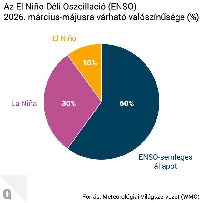 A WMO előrejelzései szerint 2026 márciusa és májusa között 60 százalék az esélye az ENSO-semleges állapotnak.