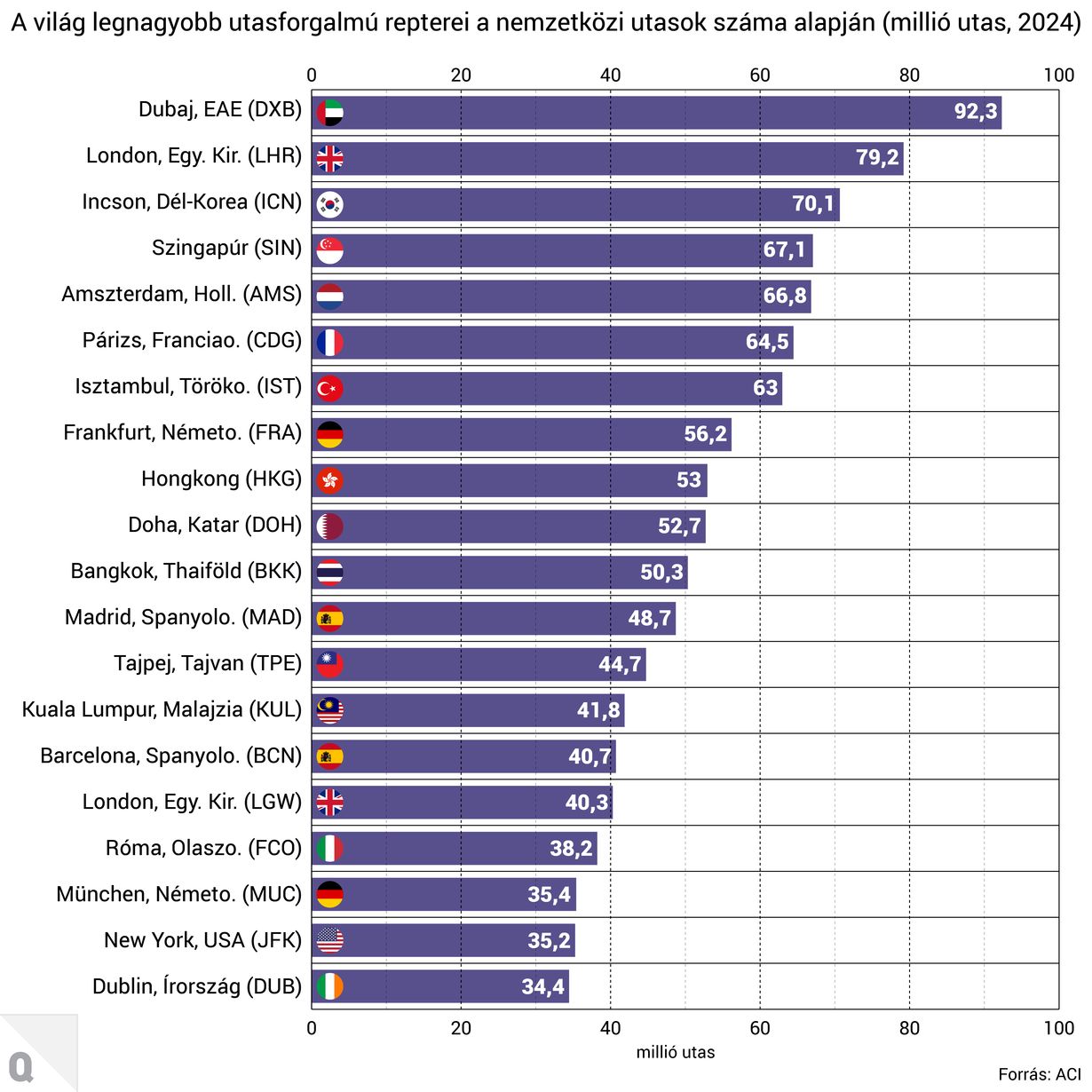 Ha a nemzetközi utasforgalmat nézzük, máris látszik, hogy a légtérzár miatt miért rekedt százezres nagyságrendű utas a dubaji, dohai vagy az abu-dzabi reptéren.