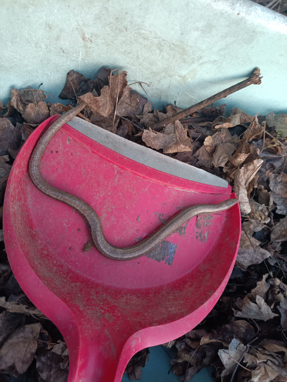 Szerencsére ez a példány nem volt túl gyors: amikor megfogtam, lustán megemelte a fejét, de a teste teljesen meg volt még merevedve, hiába volt kinn 17 fok, a vízakna alján még hideg volt, így az S alakú lábatlangyíkot baleset nélkül sikerült áttelepíteni egy rózsaszínű szemétlapátra (az volt kéznél), majd egy avarkupacba, ahová gyorsan (lassan) be is túrta magát. Miután nem tudtam, hogy jót tettem-e ezzel a jószággal, írtam egy e-mailt Wenner Bálint biológusnak, az Ökológiai Kutatóközpont munkatársának, hogy igazítson el a kuszmafogás rejtelmeiben, hiszen ha valaki, hát ő már fogott elég kuszmát az életében: hogy kell hozzányúlni egy lábatlangyíkhoz, hogy ne sérüljön meg?