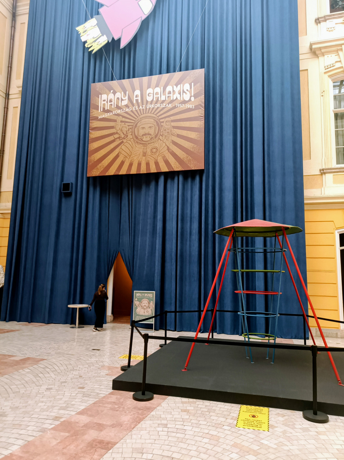 „De nem a menő fajta” – folytatta, mielőtt még túlzott izgalomba jöttem volna. Ilyen az én szerencsém, még akkor sem nosztalgiázhatok egy jót, amikor egy olyan kiállítást nézek meg, ami hivatalosan a Magyarország és az űrkorszak (1957-1983) alcímet viseli, még hivatalosabban pedig azt, hogy Irány a Galaxis! A mászóka tényleg nem a menő fajta volt, inkább amolyan temus változat: úgy nézett ki, mintha egy hozzám hasonló rakétamászóka-hiányos őrült hegesztette volna össze a sufniban, de hát ne legyünk telhetetlenek. Itt is engedtem el az álmaimat is: ha a BTM se tud egy épkézláb mászókát szerezni, nekem itt aztán végképp nem terem se babér, se mászóka, legfeljebb építtetek egyet, ha nyerek a lottón. Semmivel nem nézne ki hülyébben a kertben, mint itt, a Barokk teremben, ahová olyan zseniálisan nem illett, hogy már majdnem illett is.