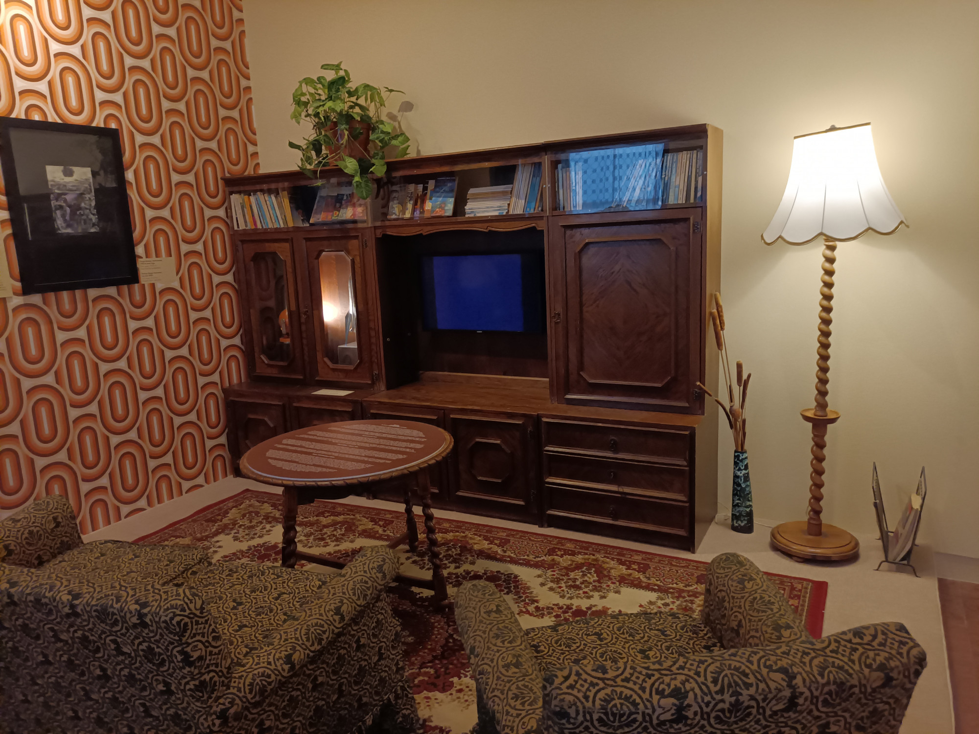 Az utóbbi években több, kifejezetten magyar tematikájú űrkiállításon is jártam: 2019-ben Kiskunfélegyházán, a Magyari Béla-emlékkiállításon, tavaly pedig a Millenárison, a Huniverzumon, ahol a Millenárison 1100 négyzetméteren dicsőítették a magyar űrkutatást és különösen Kapu Tibort, a második magyar kutatóűrhajóst. Az Irány a Galaxis! egyikre sem hasonlít: a Magyari-kiállításon a csereűrhajós személyes tárgyait lehetett megnézni, a Huniverzumon az emberfeletti méretű Kapu Tibort és a Nemzetközi Űrállomás méretarányos részleteit, itt pedig némi túlzással a szülők-nagyszülők nappaliját, lemezgyűjteményét és játékait, és legnagyobb döbbenetemre a saját hálószobám mását, aminek a bútorzata a jelek szerint megegyezik a tihanyi MSZMP-üdülő dohányzójának berendezésével.