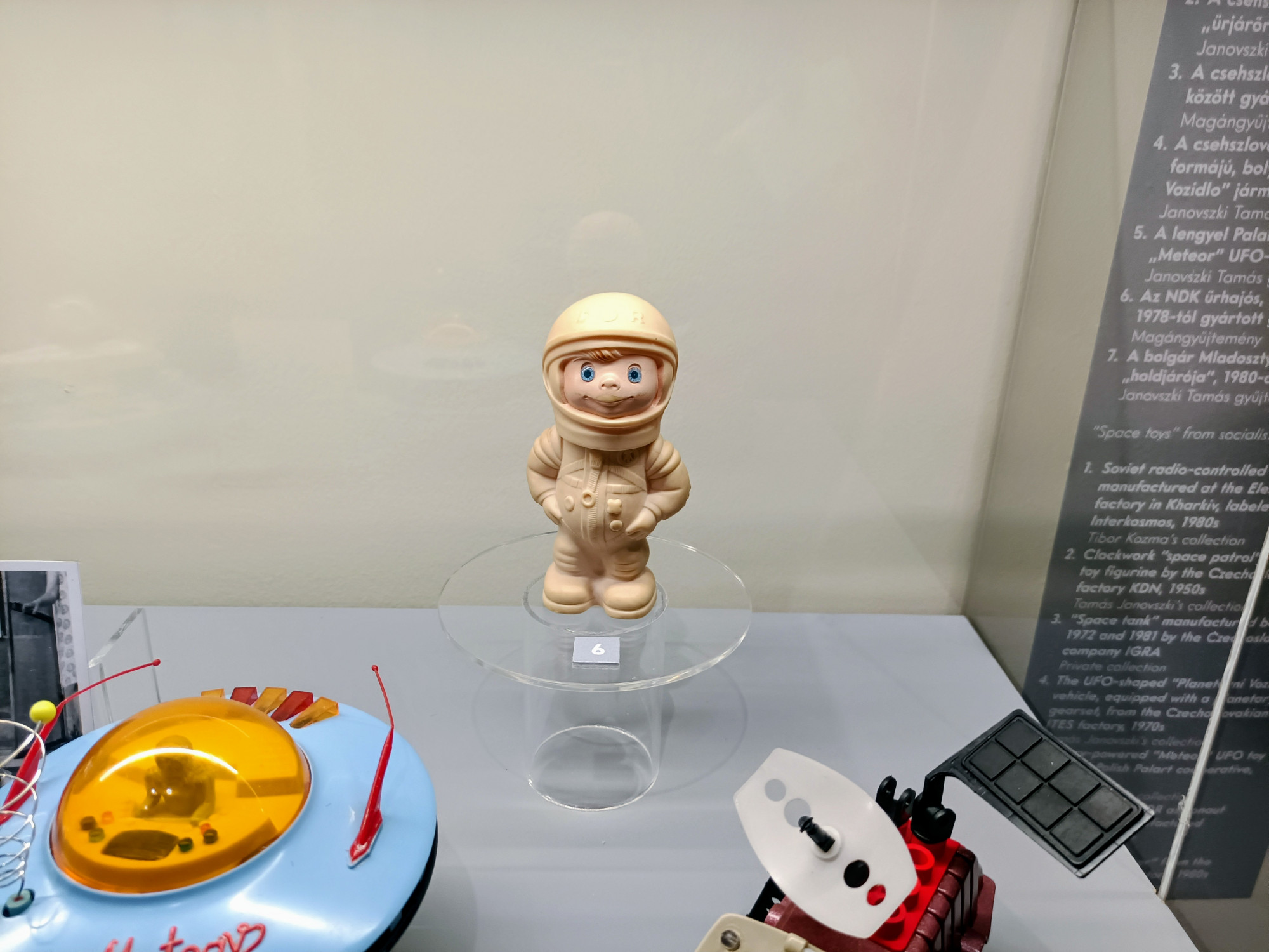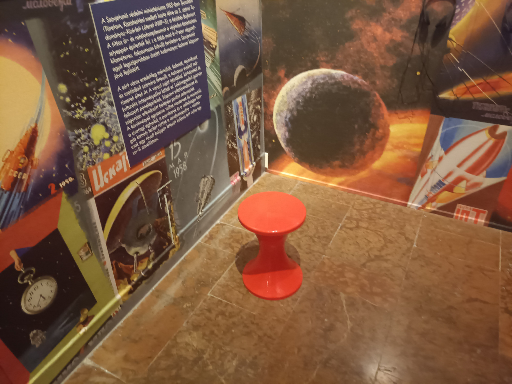 Akinek ahhoz van kedve, végigsétálhat a magyar űrpop-kultúrán Zsoldos Pétertől Helényi Tibor Star Wars-plakátjaiig, időközben számtalan játékot és számos tárgyi emléket megcsodálva – ezek közül is kiemelkedik a Konzerv- és Paprikaipari Intézet 1980-as konzervgyűjteménye, amivel nemcsak magukat, hanem a magyar űrsikereket is népszerűsítették. A némileg viharvert díszdobozos konzervek között volt sült kolbász aszpikban, sertéspörkölt, sertéssült és valami olyan is, amire, mióta láttam, még jobban vágyom, mint a rakétamászókára: az egyik doboz „magyaros étvágyfalatokat” tartalmazott. Hogy ebből ezzel a névvel miért nem lett nagyobb sláger, mint a Globus klasszikus sóletkonzervje, rejtély.