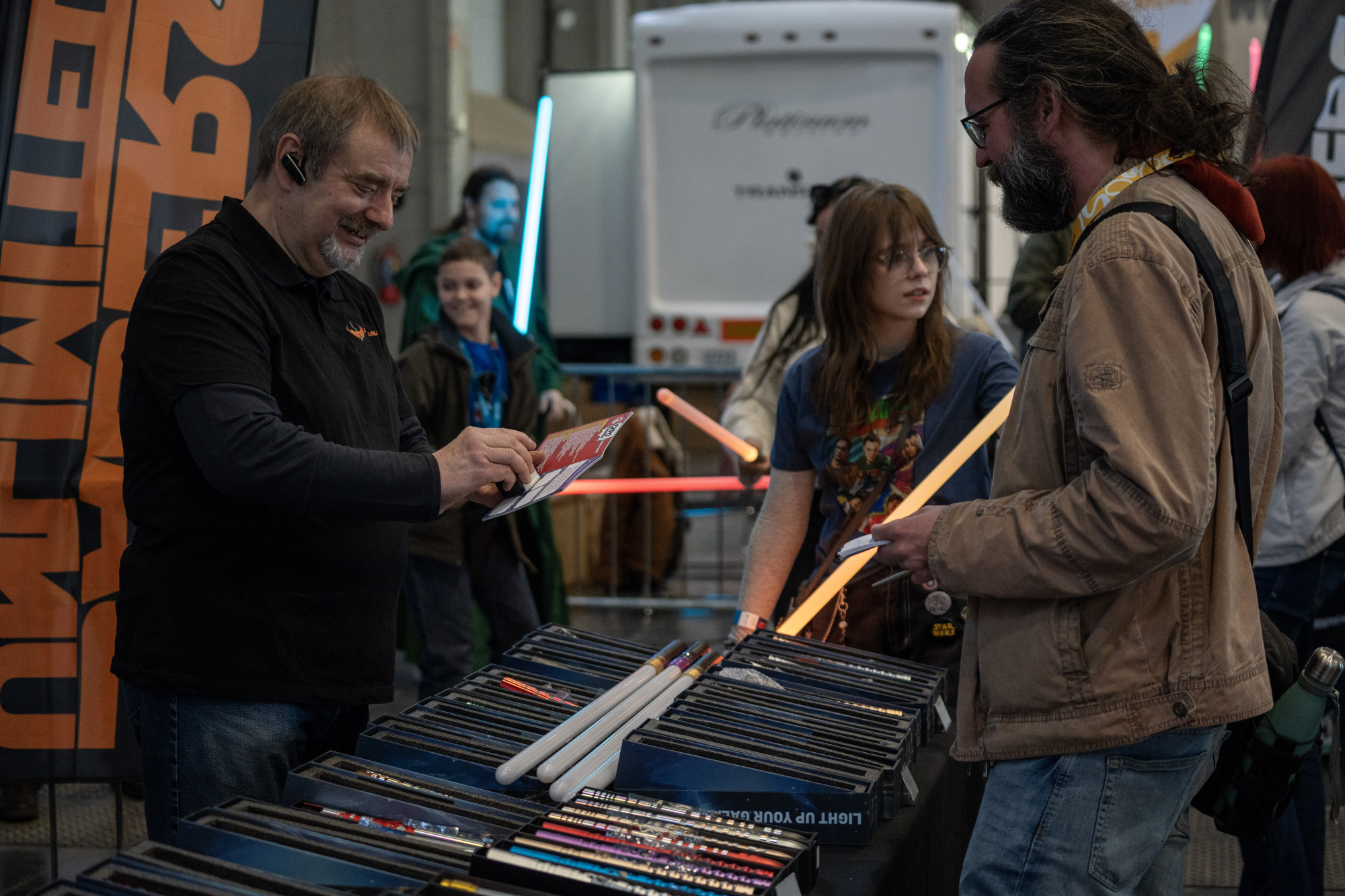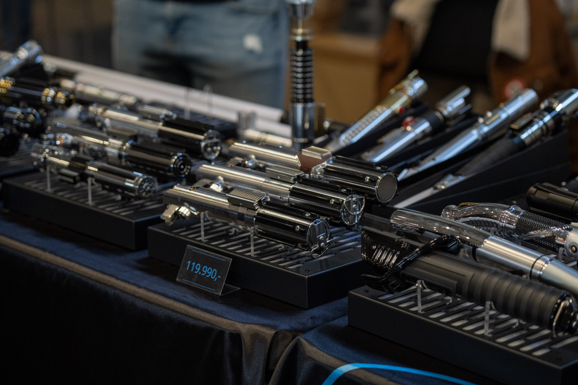 Livingstone viszont csak a hab volt a geektortán. A rendezvény négy csarnokban zajlott, de ami még fontosabb: az egyik csarnokban rögtön két helyen is lehetett fénykardot vásárolni, 35 ezer forinttól nagyjából 220 ezerig – szerencsére egy plexi fénykardtartó csak kétezer forintba került hozzájuk. Mint megtudtam, az olcsóbb fénykardokat vívásra veszik (több fénykardvívóklub is működik), a drágábbakat dísznek vagy egy meglévő jelmez mellé, hogy autentikus legyen. És míg az olcsóbb verziók csak négy hangeffektet tudnak, a drágábbakban már 14, 28, vagy akár 30 különböző hang is van, sőt sajátokat is rájuk lehet tölteni USB-n keresztül. Ha ezt szegény Luke Skywalker megérhette volna!
