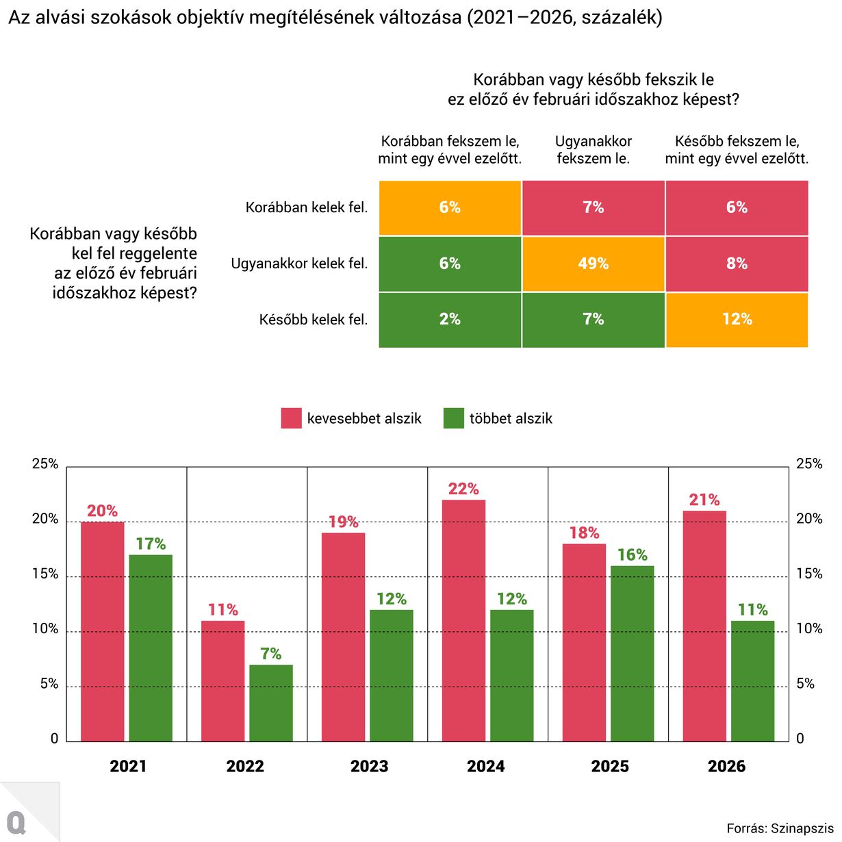 A Magyar Alvás Szövetség a Szinapszis Egészségkutató Kft. piackutató céggel közös reprezentatív kutatásban évek óta vizsgálja a magyarok alvásminőségét. A legutóbb idén márciusban publikált eredmények az időgazdálkodás aktuális állapotáról is tudósítanak.