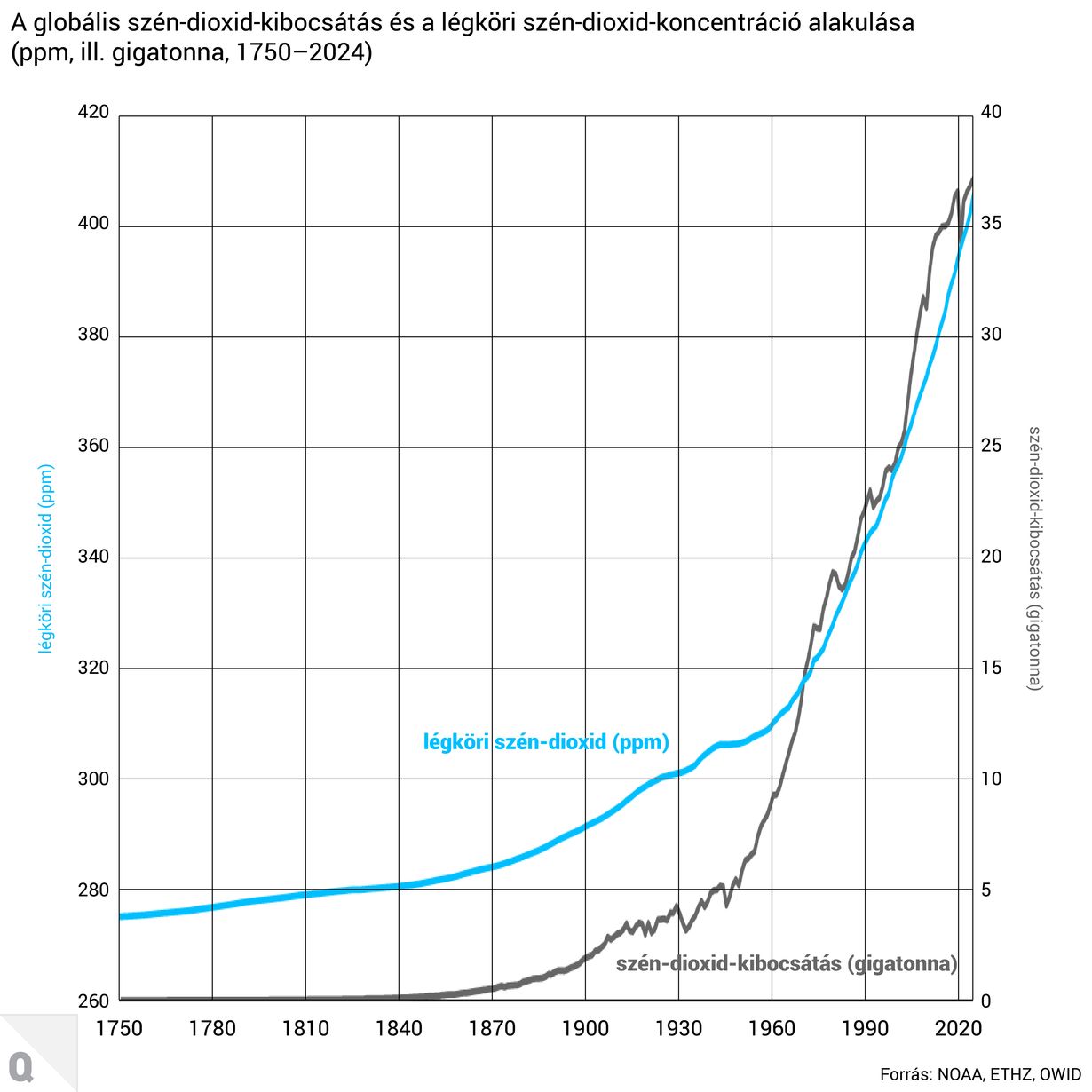 Az USA óceánokkal és atmoszférával foglalkozó szervezete, a NOAA adatai szerint az ipari forradalom előtt a légköri szén-dioxid koncentrációja nagyjából 280 ppm körül mozgott. A PPM olyan dimenziótlan mértékegység, amely azt mutatja meg, hogy 1 millió részecskében mennyi a vizsgált anyag mennyisége, azaz egymillió légköri részecske közül 280 volt CO₂. Ez az a szint, amely mellett az emberi civilizáció kialakult, és amelyhez az éghajlati rendszer, minden természetes ingadozásával együtt, alkalmazkodott. Aztán jött a fosszilis korszak.