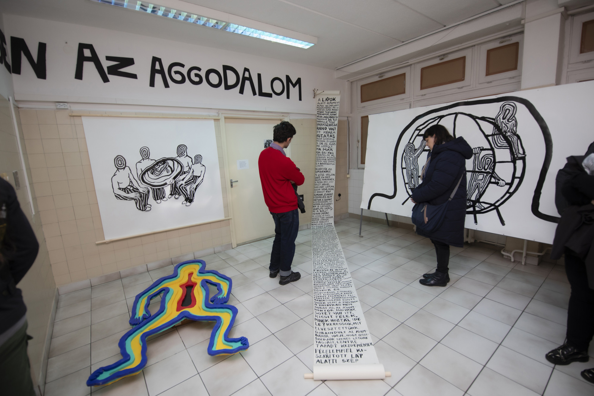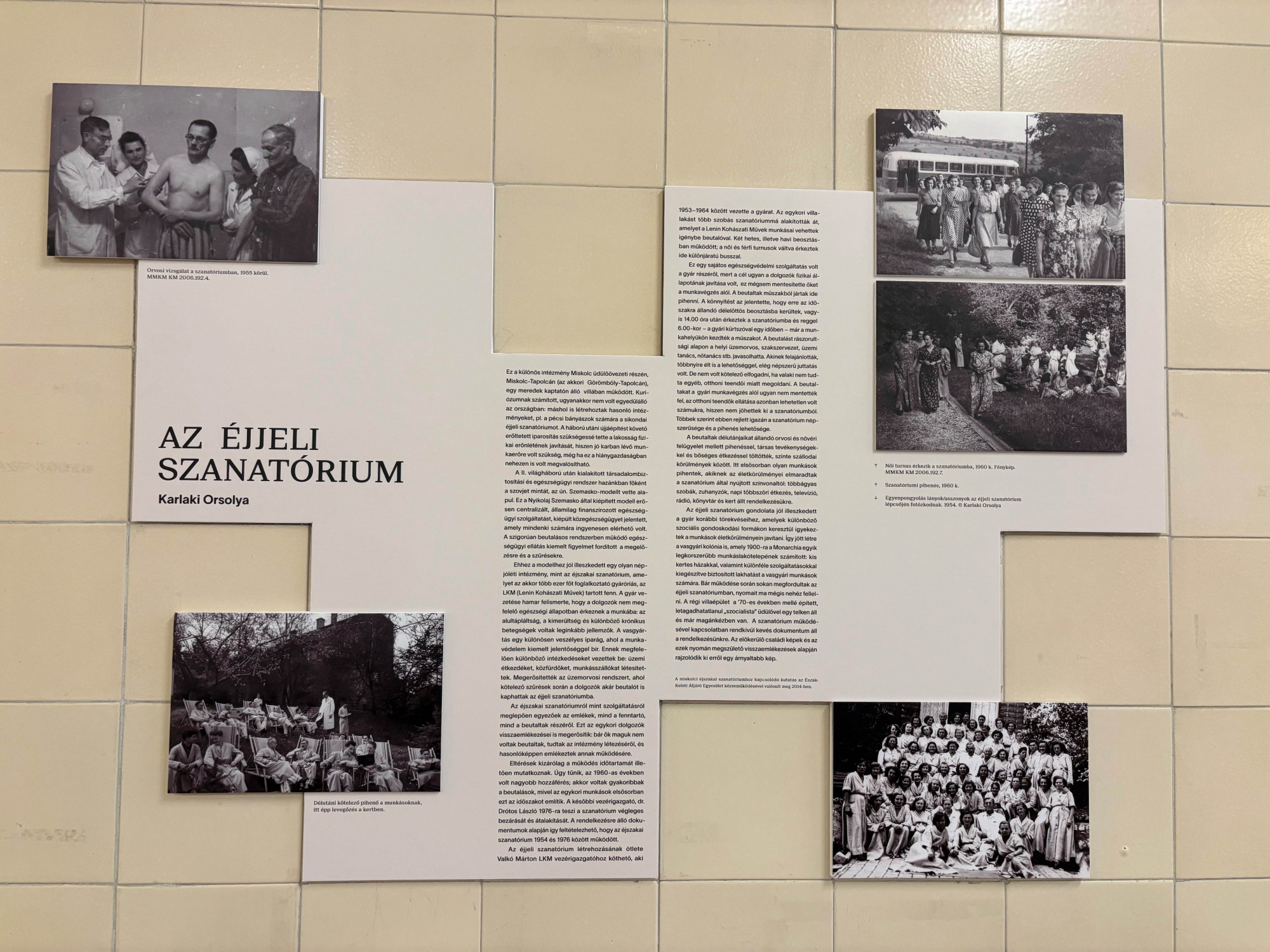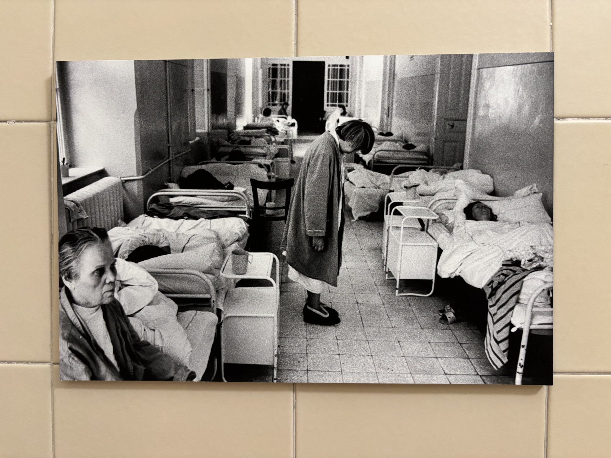 A mű ellenpontja egy rendelővel arrébb Szebeni András fotósorozata, a Jelenetek a pszichiátriai intézetek életéből (1982-83) című széria. Szociofótónak is nevezték a tényfeltárásnak és a dokumentálásnak ezt a műfaját – miközben a mából nézve felforgató erejűek ezek a képek. A pszichiátriai ellátórendszer összeomlásáról ma sok szó esik, de a megbélyegzés, a marginalizáció, az erőszak, a gondoskodásra szorulók jogfosztásának és elítéltekként való kezelésének témája a szocializmusban hiába volt agyonhallgatva, olykor mégis felszínre tudott törni.