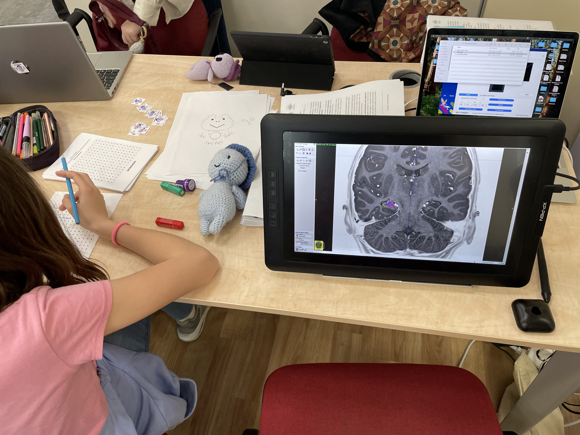 A HUN-REN TTK Hippocampal Circuit and Code for Cognition (HCCCL) kutatólaborja standjánál a gyerekek és a szülők MR-felvételeken próbálhatták ki az emlékezésért felelős agyterület, a hippokampusz alrégióinak szegmentálását.
